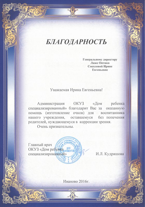 Я давно пользуюсь услугами вашей люкс-оптики. Когда я работала в аптеке, мы заказывали у вас очки для всего района и для себя. Коллектив и обслуживание нам очень нравятся. Сотрудники приятные, вежливые и быстро делают свою работу. Нам всегда быстро изготавливают очки. Мы живём в посёлке Пестяки, это 120 километров от Иваново. Нам нужно ехать на автобусе, но сотрудники всегда идут нам навстречу, чтобы исполнить наш заказ к двум часам. Это очень важно для нас, чтобы не тратить время и деньги на дорогу. Мы выбираем очки подешевле, так как мы пенсионеры. Я планирую записаться и попасть на приём к врачу.